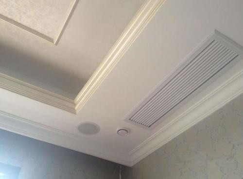 1. 中央新風,選配了250風量的全熱交換機,將主機掛在廚房的頂上,離外墻近,也不會影響業主平時的起居。客餐廳留了兩個新風口,一個回風口,主臥、次臥、兒童房都留了新風口、回風口。