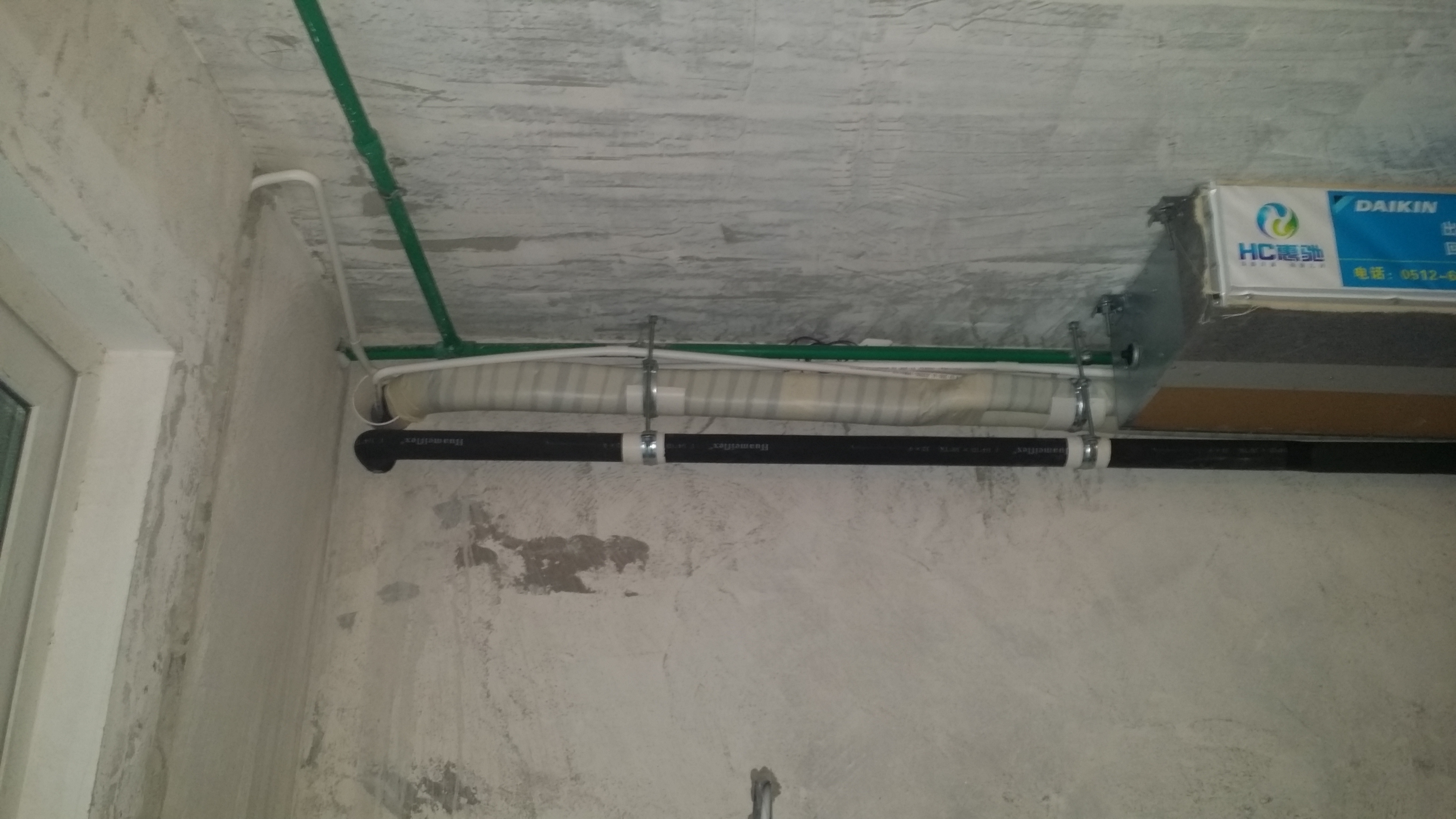 2.冷凝水管、控制線放置到位;