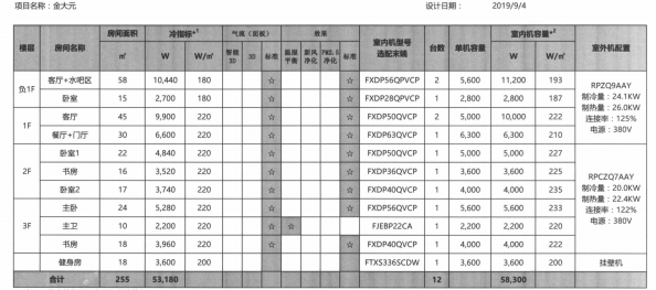 舒適節(jié)能系統(tǒng)配置匯總表