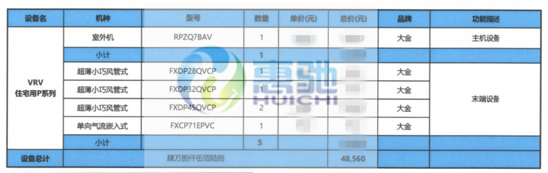 配置說明:大金VRV P系列是專為高檔住宅設計的設備,以其穩節能性、舒適性、穩定性而備受用戶青睞。 室內機采用超薄小巧風管機,可靈活對應60~350㎡不同房型,超薄小巧機身,安裝緊湊,風口形式自由與內裝配合。通過室內機熱交原件及內部風道的合理設計調整,可實現低至27dB(A)的低運轉音。大金多聯控制技術,可自由控制不同房間的空調使用狀態,滿足個性化空調使用需求。冷媒預測控制技術,快速精準響應室內設定溫度要求。強大先進的控制系統,即可進行個別控制,也可通過選配集中控制系統實現整套系統的管理,操作簡單便利。