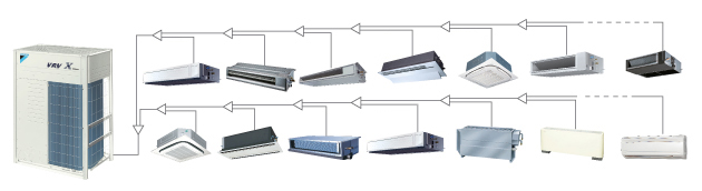 VRV多聯(lián)式空調(diào)系統(tǒng)成為最流行的空調(diào)系統(tǒng)之一,和其他空調(diào)系統(tǒng)相比,VRV空調(diào)系統(tǒng)有自己獨特的優(yōu)勢,被廣泛應(yīng)用于大型樓宇酒店等場合,那么大金VRV X SERIES直流變頻中央空調(diào)有什么獨特的優(yōu)勢呢?